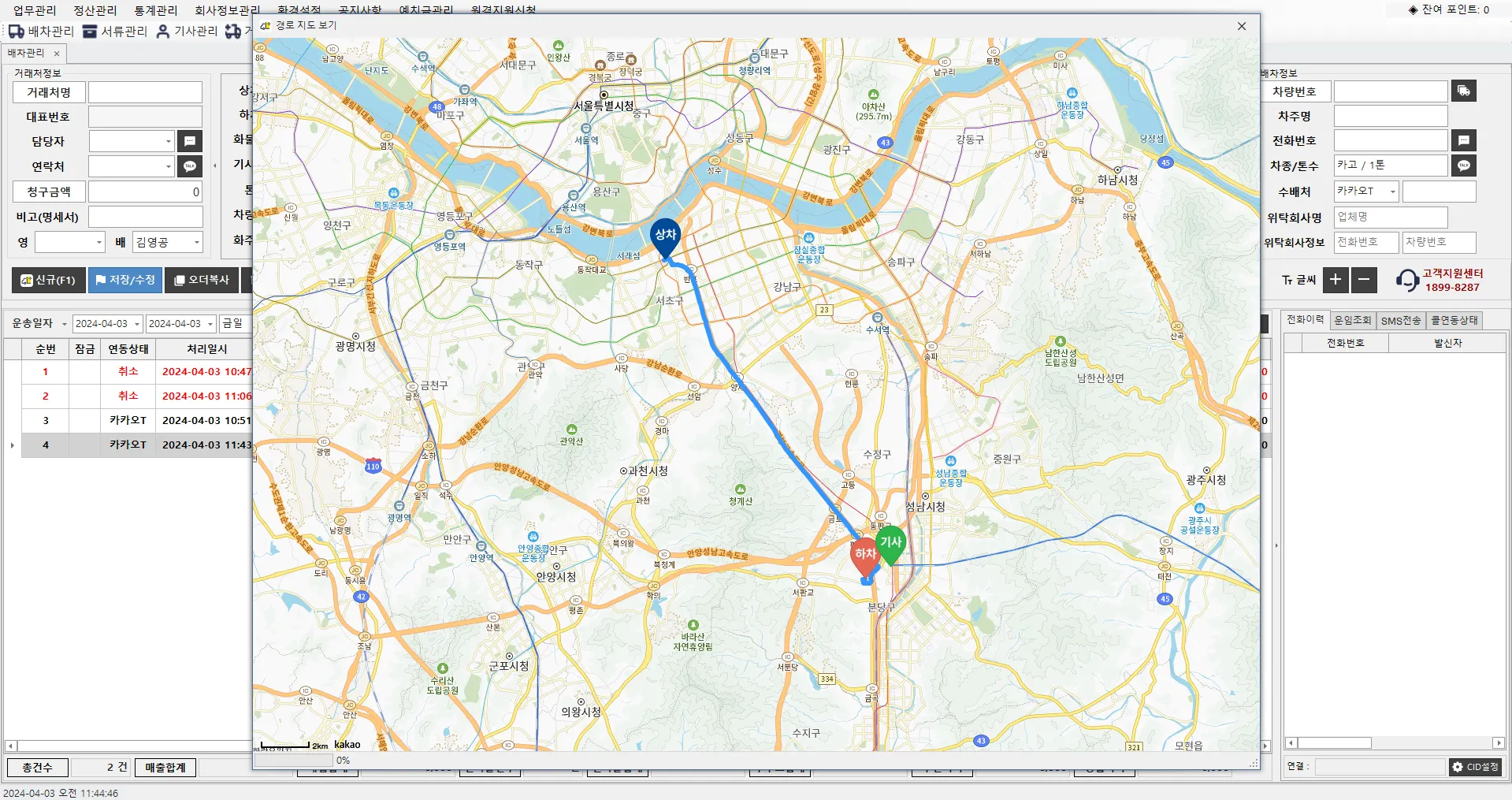 배차 요청부터 기사 운임 지급까지 한 번에 처리해 보세요.