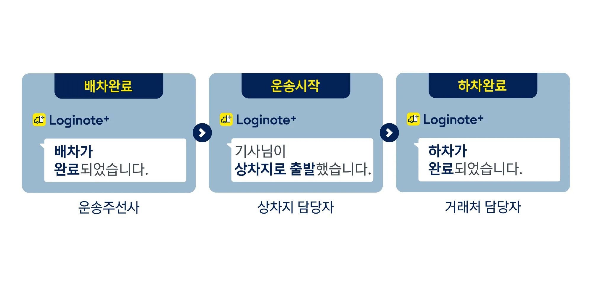 배차상태에 따라 주선사, 운송지 담당자에게 자동 알림을 보내드려요.